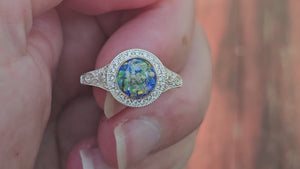 Each of these lovely cremation ring creations contains a small amount of cremation ash (1/4th a teaspoon) from your loved one. Our cremation rings for ashes are handmade with the cremation ash added at time of formation. Cremation ashes need to be sent in for pet cremation rings and human ash cremation rings.