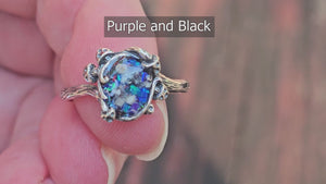 With crystal resin, we mix the resin with a decorating agent, such as colorful crushed opal or mica. Once this layer is set, we mix in cremation ash into the ring's bezel, and then cure it. This is a very hard resin layer which resists scratches and wear, but as mentioned above best to avoid harsh chemicals and sunlight. In some circles this is known as epoxy jewelry.