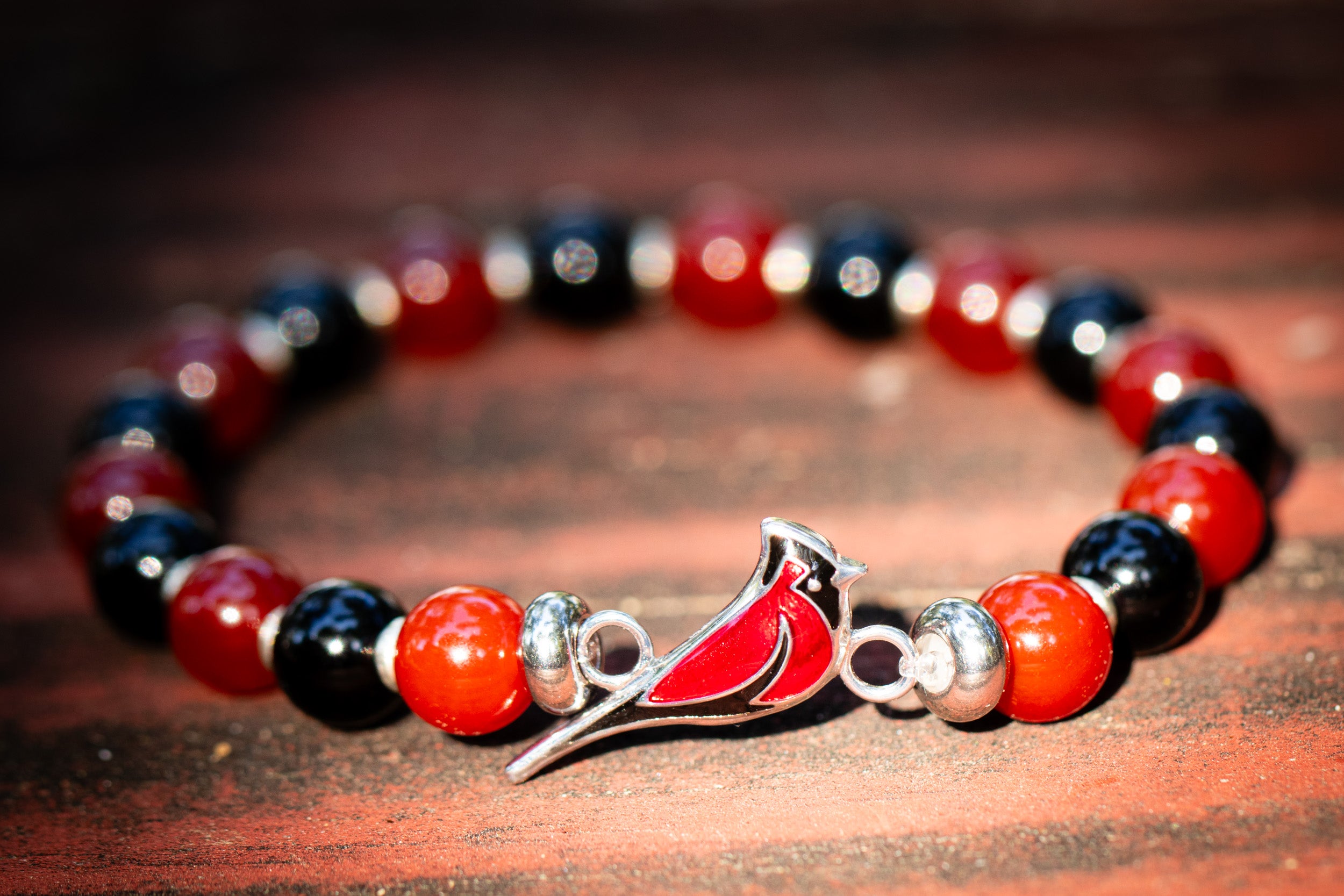 | Size | Beads: Approx. 8mm Cardinal Charm: Approx. 16mm x 8mm Bracelet sizes: Petite (Approx. 6"), Small (Approx. 6.75"), Medium (Approx. 7.25"), Large (Approx. 8") Bracelet can be custom sized outside our listed options, please mention the size needed in your order notes at checkout. Bracelet is elastic. |